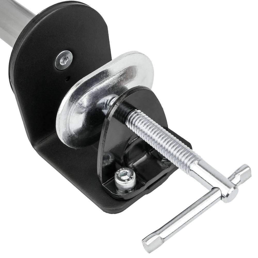 - Der Mast wird mit Hilfe einer Druckklemme mit einem Tourniquet auf dem Tisch befestigt. Es ist auch möglich, die Schrauben direkt an den Tisch zu befestigen, für ein Fertigprofessioneller und robuster.