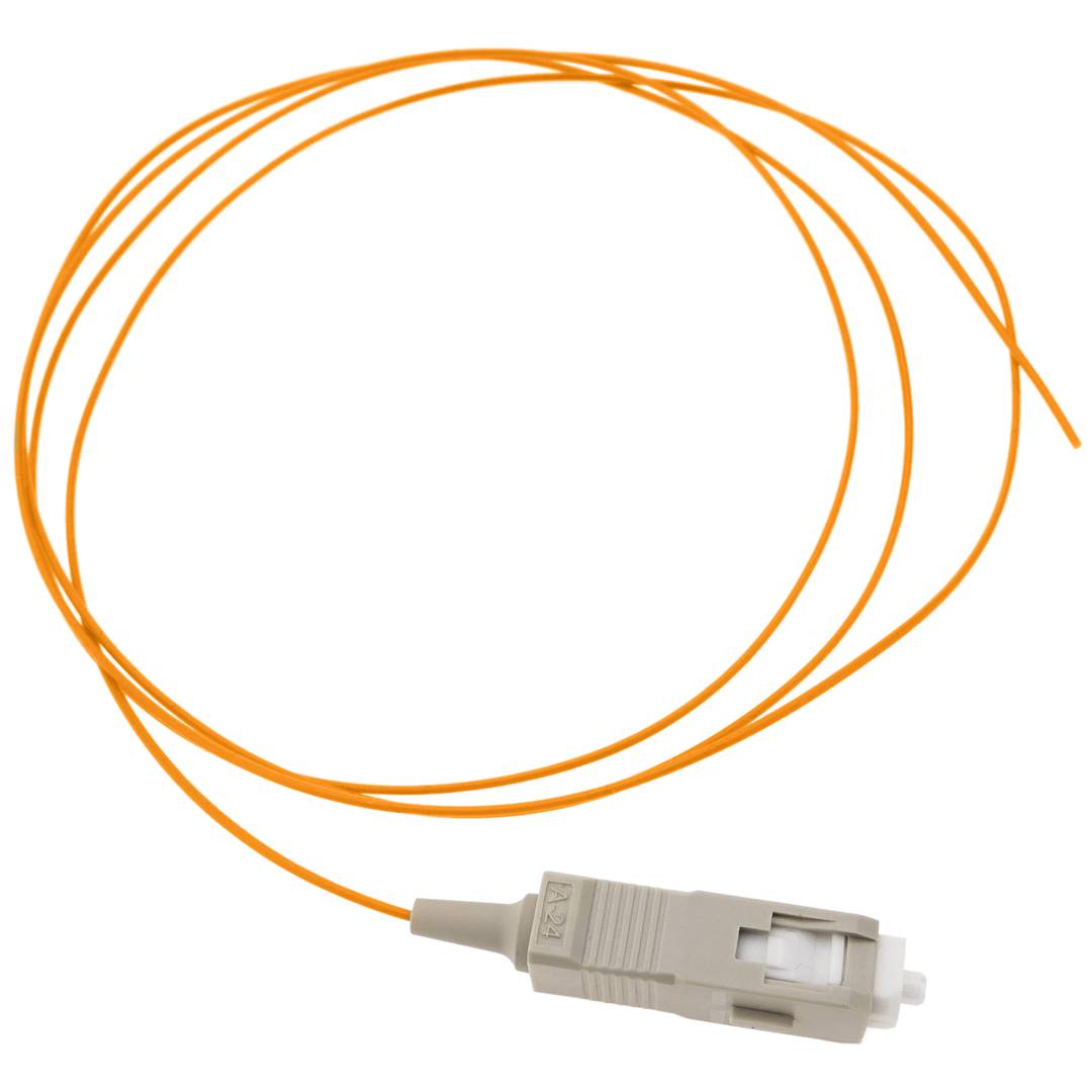 Coda in fibra ottica o pig-tail. Si tratta di un cavo in fibra ottica con un'estremità terminata con un connettore SC/PC che si collega all'apparecchiatura e l'altra estremità non terminata utilizzata per integrare i cavi in fibra ottica tramite fusione o giunzione manuale. Queste code offrono prestazioni ottimali per installazioni in fibra ottica e pannelli di permutazione.