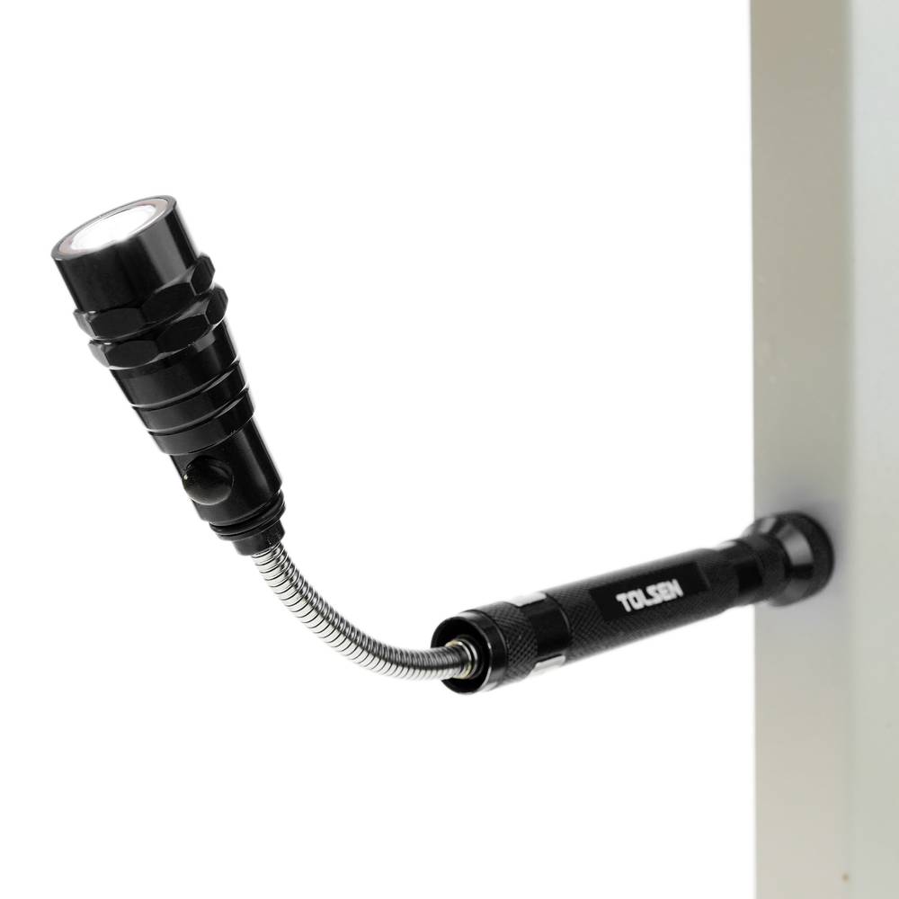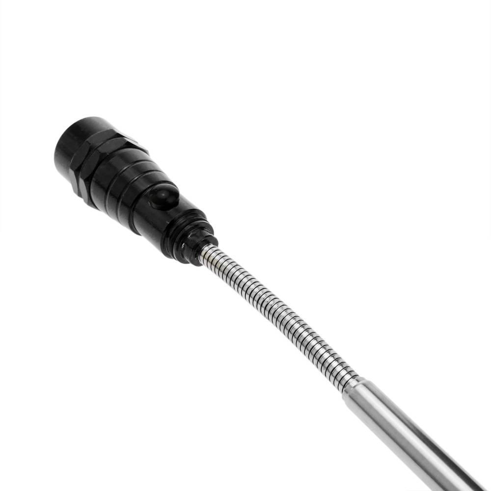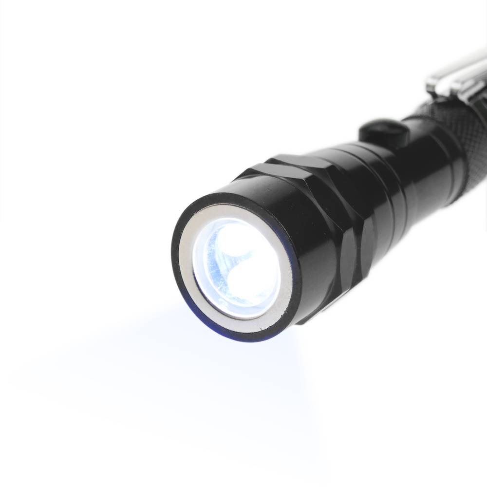 Aluminium zaklamp op basis van 3 ultra heldere LED's. Het straalt een lichtbron van grote intensiteit uit. Hoge sterkte metalen behuizing. Aan elk uiteinde heeft het een magneet waarmee u de zaklamp op elk metalen oppervlak kunt bevestigen. Ideaal voor reparaties in krappe ruimtes, of waar het licht moet worden bevestigd. Het heeft ook een uitbreidbare en verstelbare body, dus het past zich aan elke omgeving aan. Ideaal voor reparaties op moeilijk bereikbare plaatsen en bij weinig licht.