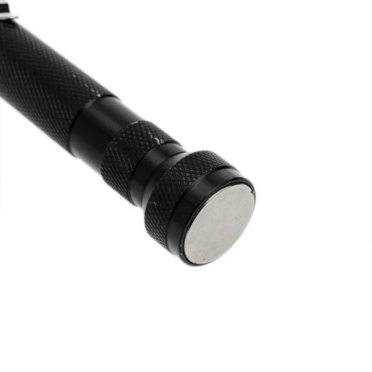 - Het heeft een magneet aan elk uiteinde, waardoor de zaklamp op metalen oppervlakken kan worden bevestigd.